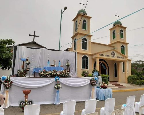 Las celebraciones para la virgen María Inmaculado se inician desde el día 5, 6, 7 y 8 de diciembre. Este Evento Religiosa se lo realiza para rendir homenaje a la santísima Virgen María Inmaculada. En estas fiestas se realizan diferentes tipos de actividades para celebrar junto en la comuna y con los invitados he visitantes, se realiza un Pregón, presentaciones culturales de diferentes grupos, show artístico, Juegos deportico, quema de castillos y baile público, misa, recorrido de la virgen.