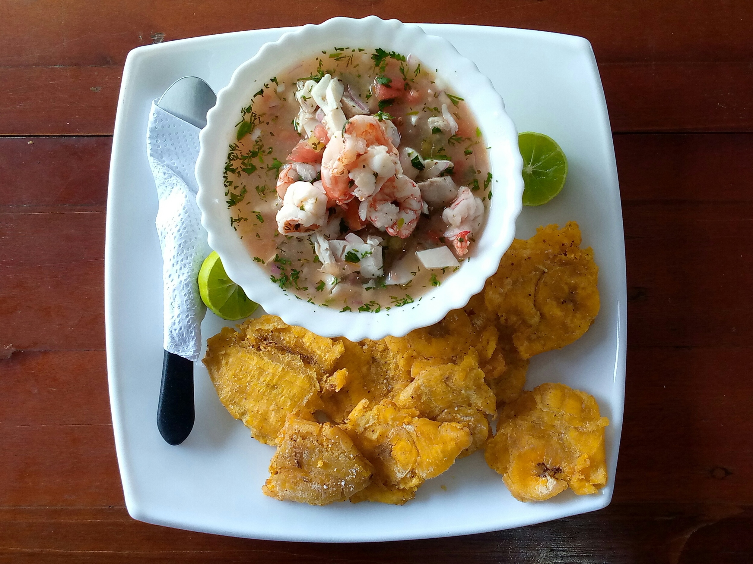Su origen se basa en su cercanía de las zonas pesqueras que tiene la comunidad, poseen todo tipo de mariscos y su presentación es con una base de vegetales, camarones, pescado curtido, pedazo de pulpo o calamar, se puede acompañar con arroz, patacones, aguacate, ají, entre otros.
